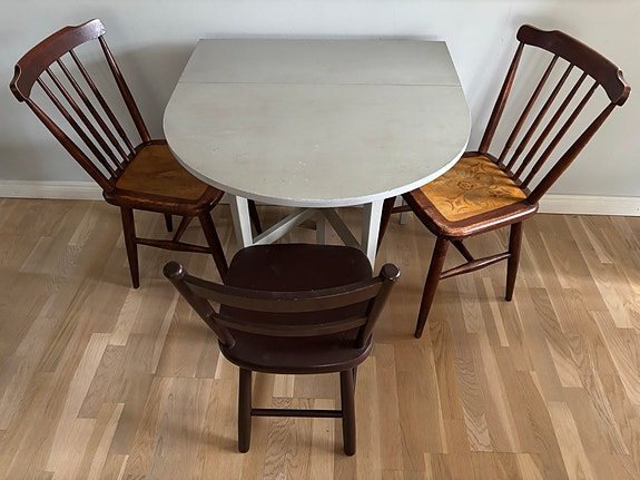 Slagbord i trä 30-40-tal. Gamla gedigna och stabila stolar