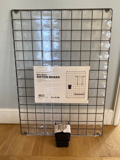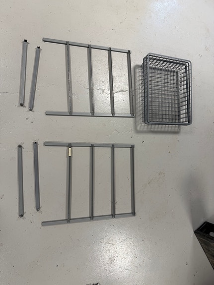 Spårpanel med hyllor och krokar