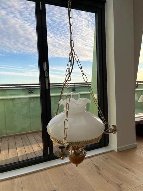 150 krVintage taklampa från BHS. Liknar oljelampa i glas, keramik och mässing.Halmstad19 aprLägg till i favoriter.Öppna annons