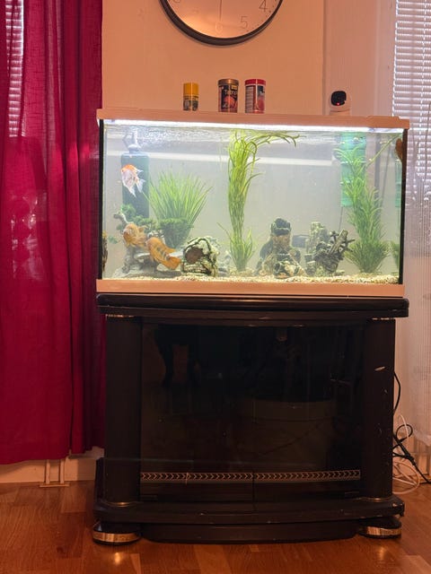 Akvarium med skåp och tillbehör