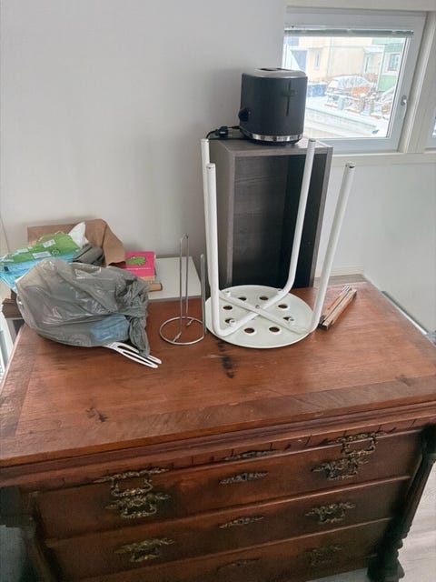 Hyllor, bord, våningssäng bortskänkes mot avhämtning