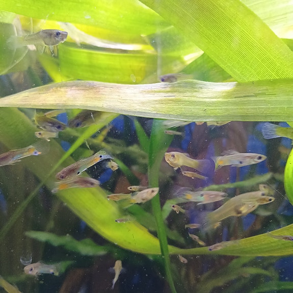 Ancistrus malar,Endlers Guppy, växter