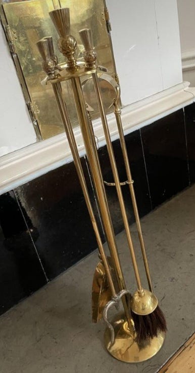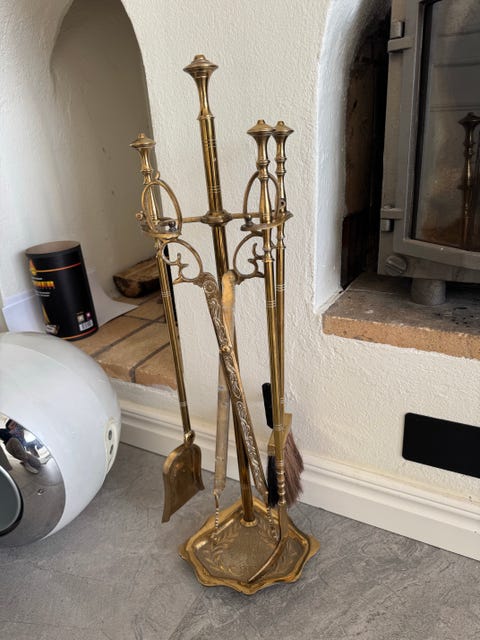 Eldstadsset i mässing