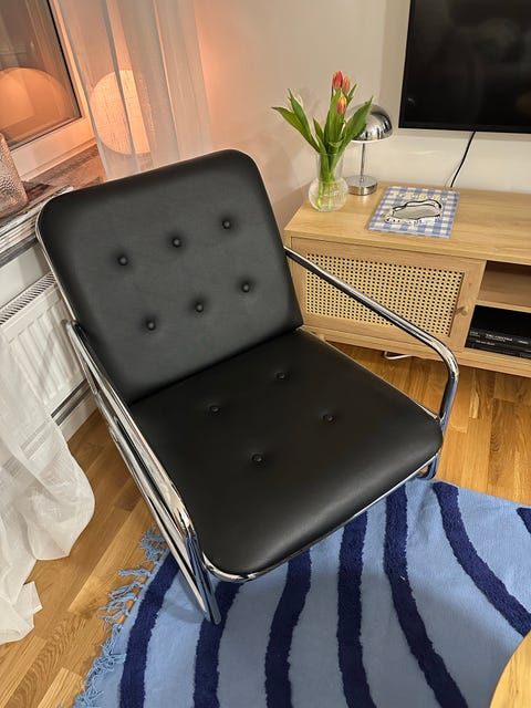 2 500 krJotex fåtölj svart med kromade armstöd av Aage Petersen JotexGöteborg4 febLägg till i favoriter.