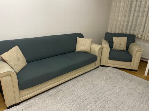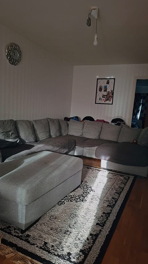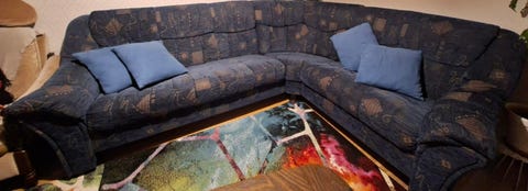 Blå hörnsoffa i gott skick