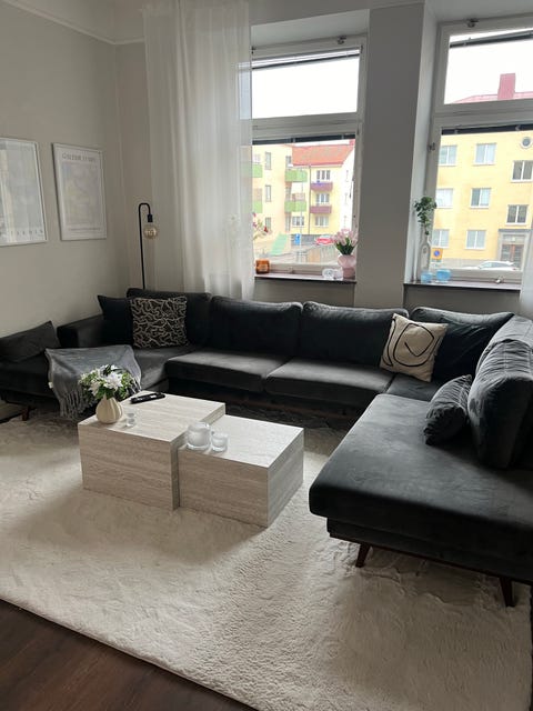 Mörkgrå u-soffa