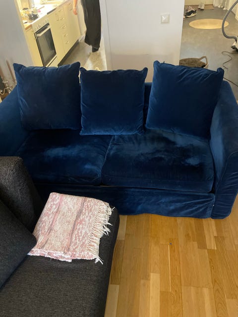soffa blå ”sammet”