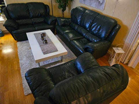 Skinnsoffa med fåtöljer