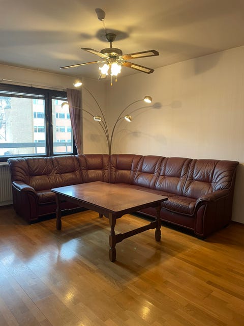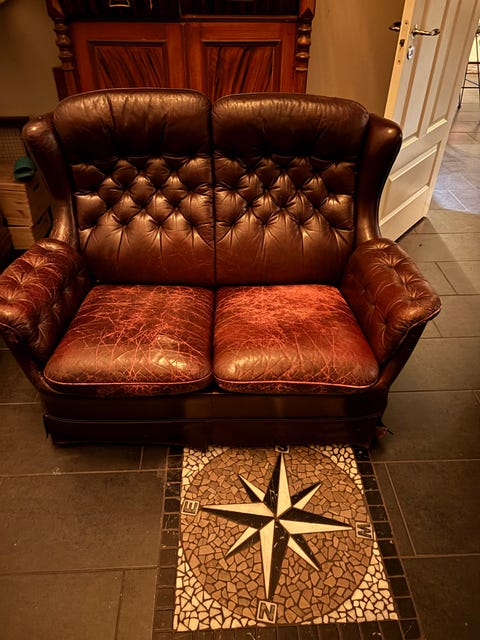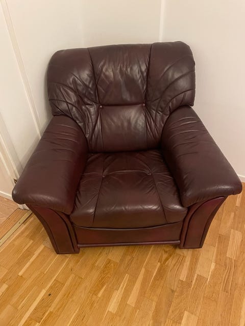 Rymlig skinnsoffa