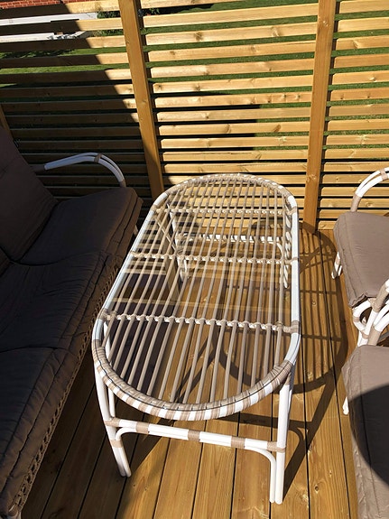 3 000 krTrädgårdsmöbler - soffa, två fåtöljer och bordVästerås1 dagLägg till i favoriter.Öppna annons