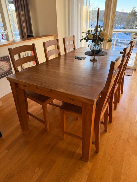 6 999 krKlassiskt matbord i massiv ek med 8st öka läderstol &TraditionGustavsberg7 timLägg till i favoriter.