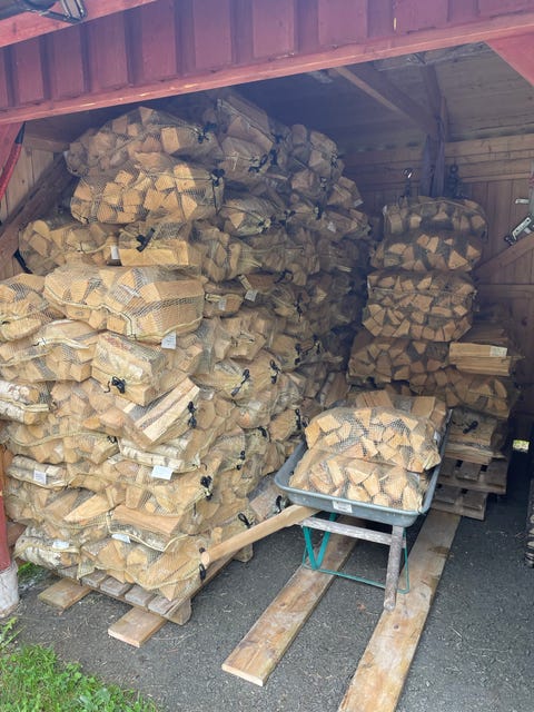 Björkved i säck