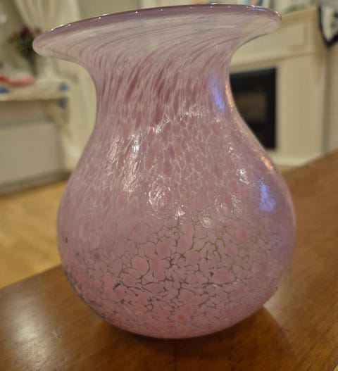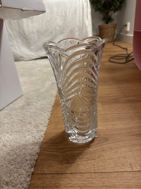 Glasvas på träfot