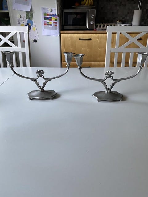 Två stycken tvåarmade ljusstakar