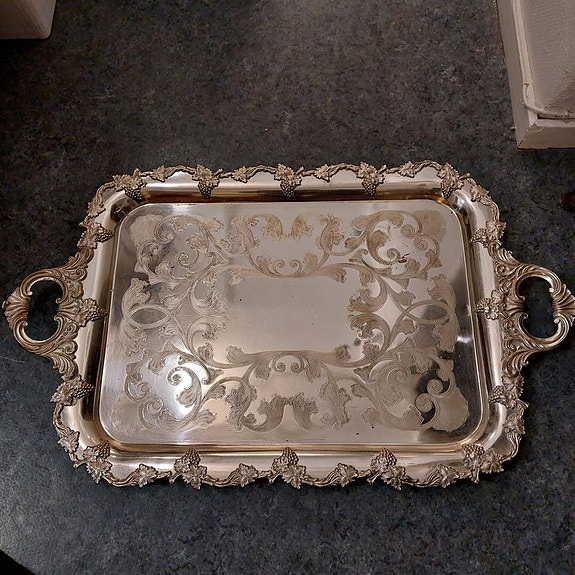 Pampigt fat på fot – Nysilver med dekor av druvklasar & vinlöv 🍇✨