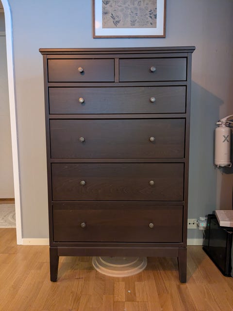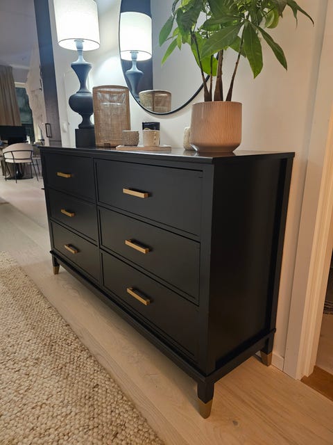 Svart byrå med sex lådor