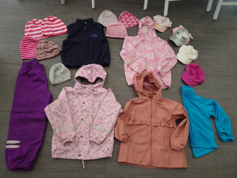Under vintern är det viktigt att hålla de små varma med rätt kläder: ulliga heldräkter, sockor, vantar, mössor och ytterkläder. En overall är ofta snabbare att ta på än separata jackor och byxor, och snön har svårare att tränga in. I annonserna bör du kolla skicket på ytterkläderna, till exempel hur bra muddar och ben kan justeras, om det finns många reflexer och om kläderna är vattentäta.