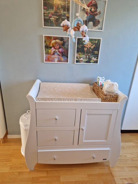 Ett skötbord är en praktisk plats för att byta blöja på din bebis. Ofta har skötbordet lådor eller korgar där du enkelt kan förvara det du behöver vid blöjbytet. Om du funderar på ett alternativ till skötbord kan ett skötunderlägg som placeras ovanpå en byrå eller tvättmaskin vara ett smart val för ditt hem och dina behov. När du tittar på begagnade skötbord är det viktigt att kontrollera möbelns höjd i annonsern så att det passar flera personer som ska byta blöja.