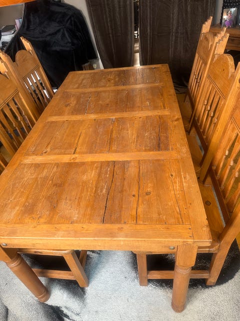 Antikt träbord med stolar