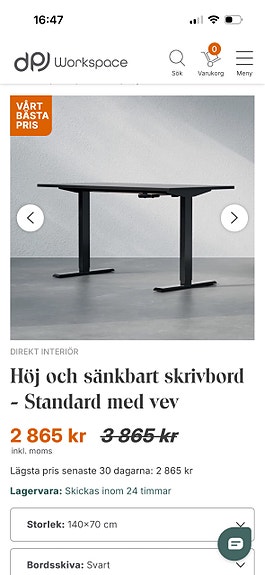 Ett skrivbord som inte längre behövs av någon annan kan vara precis vad du letar efter. Särskilt skrivbord i massivt trä eller elektriska skrivbord kan vara kostsamma, men du kan hitta ett passande alternativ betydligt billigare begagnat. Ett bra skrivbord har en höjd som passar användaren eller kan justeras efter behov. När du bläddrar bland annonserna - se till att kolla bordets mått och jämför dem med den bästa arbetshöjden för dig.