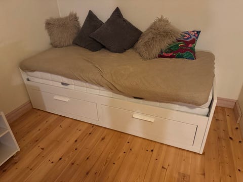 Tips: Tänk på att mäta utrymmet där bäddsoffan ska stå för att säkerställa att den passar.