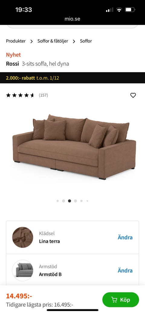 Om du funderar på att köpa begagnade möbler är det bra att ta exakta mått på den plats du har tillgänglig i ditt hem. Jämför sedan med måtten i annonserna. Kolla också om soffan har avtagbart och tvättbart överdrag eller andra skötselråd. Genom att köpa begagnat ger du möbler nytt liv och sparar samtidigt pengar.