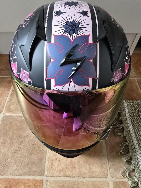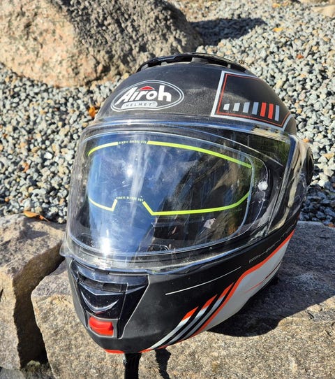 Begagnade motorcykelhjälmar och hjälmhuvor