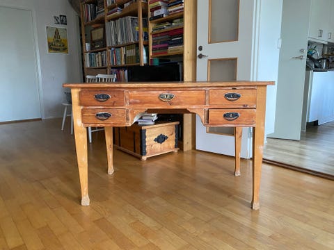 1 500 krMassivt trä skrivbord med lådor - charmigt vintageStockholm14 minLägg till i favoriter.Öppna annons