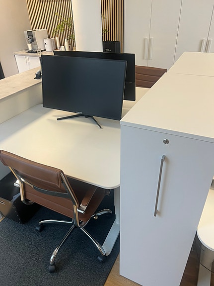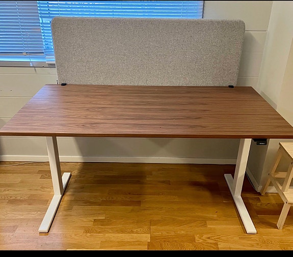 2 750 krRagnars skrivbord höj- och sänkbart valnötsskiva vit stativ grå bordsskärm.Brandbergen23 febLägg till i favoriter.