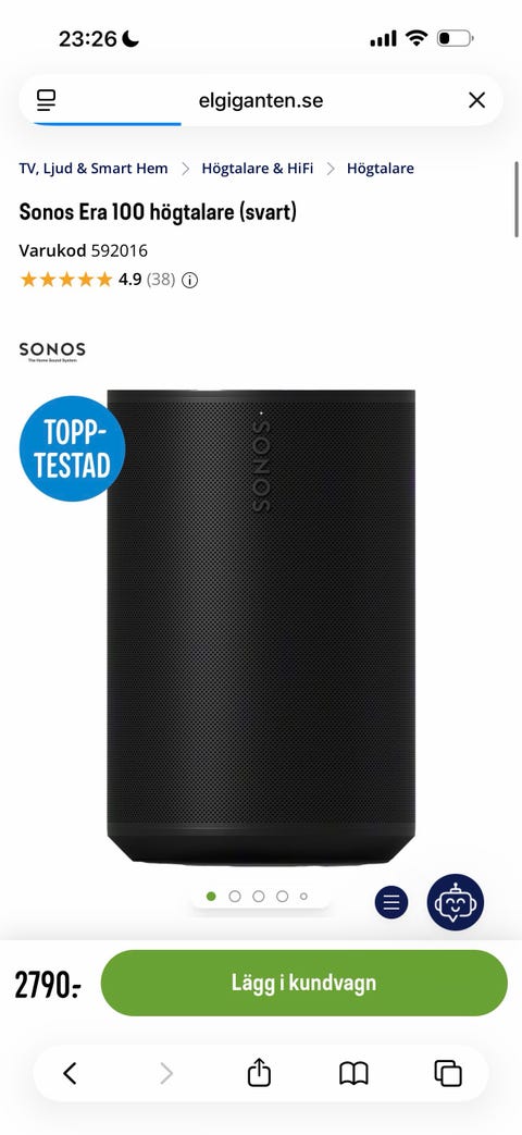2 600 krSonos Era 100 + väggfäste SonosGöteborg1 timKöp nuLastbil i rörelseKan skickasLägg till i favoriter.Öppna annons