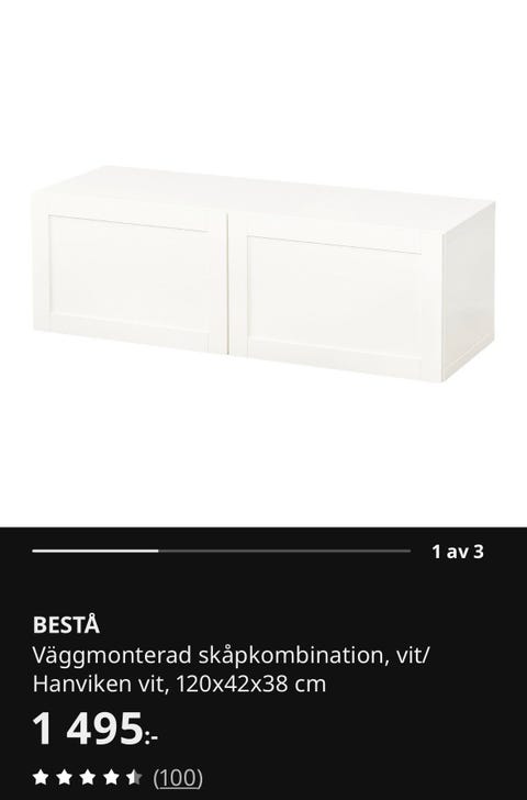 95 krBESTÅ Hylla med dörrar, vit/Lappviken vit, 120x42x38 cm - hämtas senast 2 maj IKEAMalmö30 marLägg till i favoriter.Öppna annons