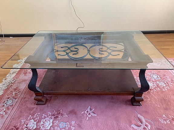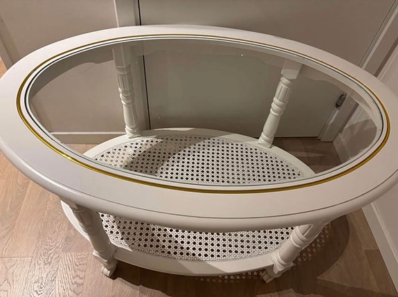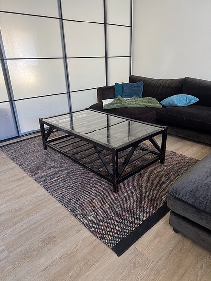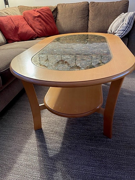 Soffbord me galasskiva