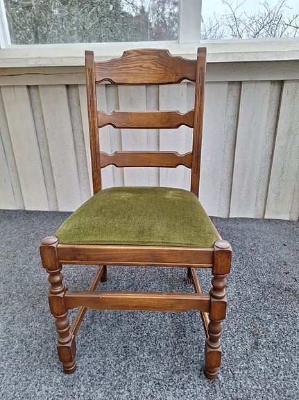Trästolar med grön sits