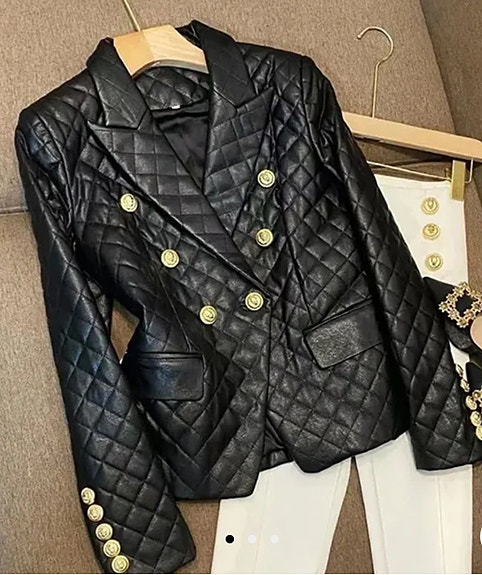 500 krNy! Kavaj dam konstläder svart quiltad dubbelknäppt storlek SStl. SSolna3 dagarKöp nuLastbil i rörelseKan skickasLägg till i favoriter.