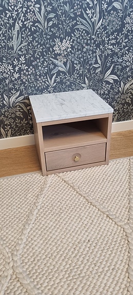 800 krSnyggt sängbord i ekträ med marmorskiva och låda för väggmonteringÄlta31 marLägg till i favoriter.