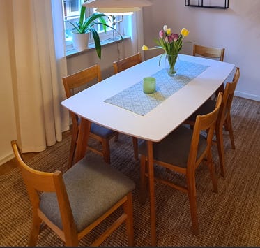 1 499 krOvalt matbord från Eton med iläggsskiva + 4 matchande stolarMärsta21 janLägg till i favoriter.