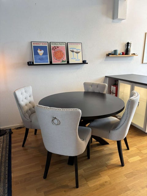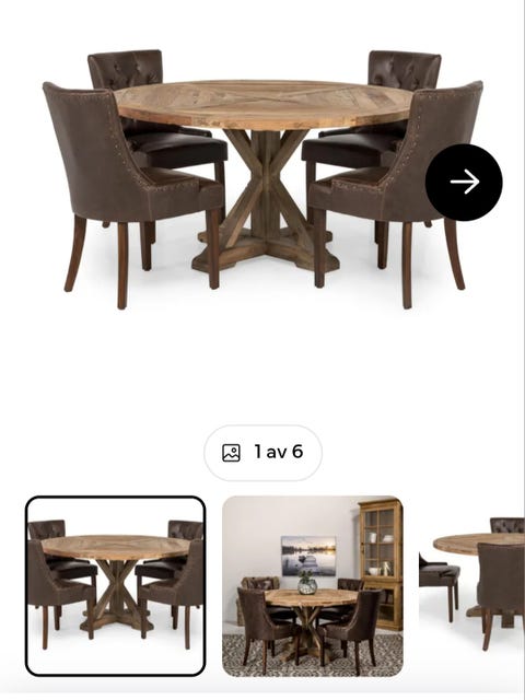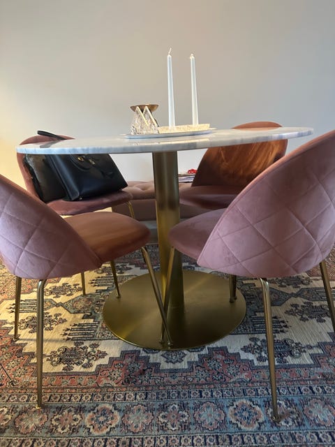 7 000 krStephanie matgrupp Ø106 – marmormönstrat glas & mässing – 4 Sharon karmstolar MioSolna7 febLägg till i favoriter.