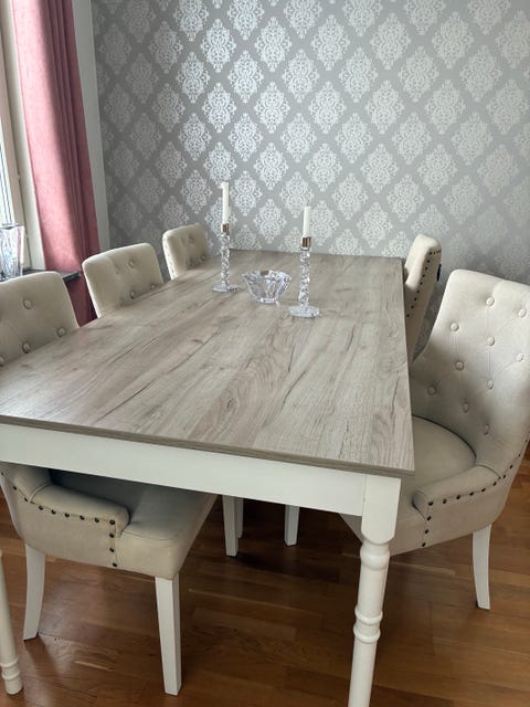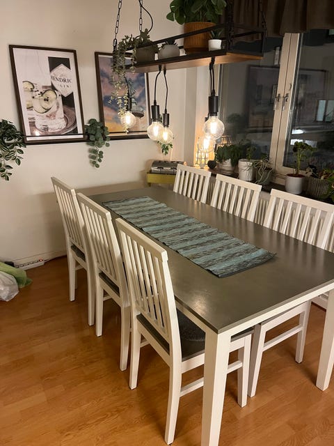 3 500 krMatgrupp matbord med iläggsskivor och 6 stolar vit trä grön sitsSundsvall8 febLägg till i favoriter.