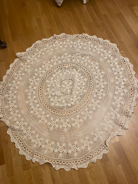 Vacker virkad rund duk