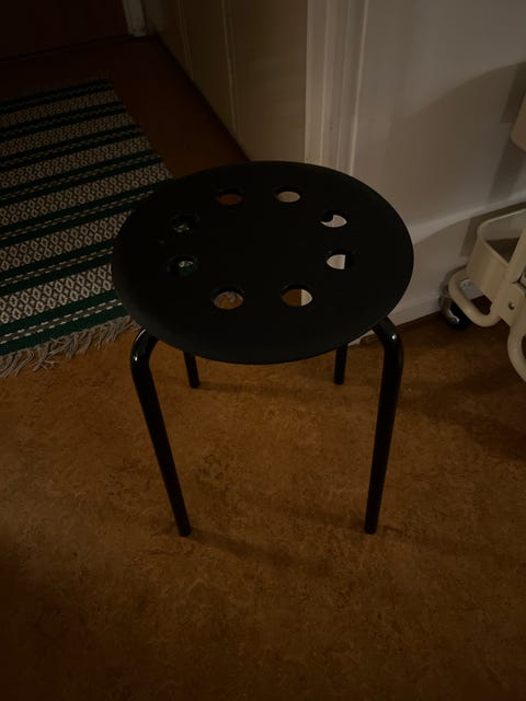Pall med fårskinn. Nyomklädd.