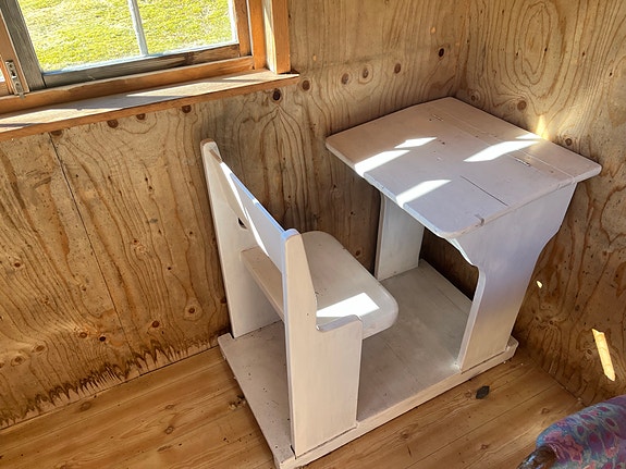 Gammal ommålad skolbänk