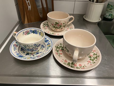 3 tekoppar med fat