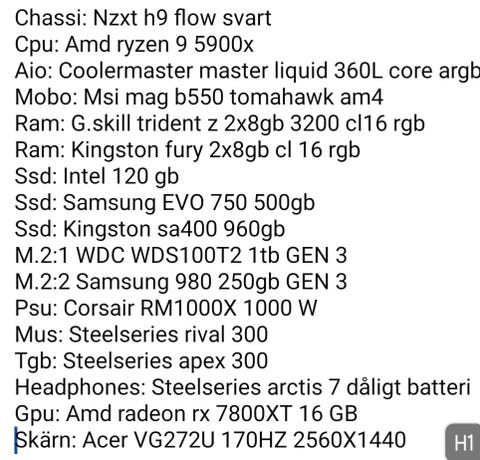28 900 kr🚀 Nybyggd High-End Gaming-PC – Ryzen 7 9800X3D + RTX 5080 – Kvitto & Garanti!Trelleborg2 dagarLägg till i favoriter.