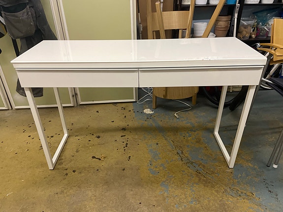 350 krVitt skrivbord 131x60 cm med två utdragbara lådor – bra skick IKEAKarlskrona3 dagarLägg till i favoriter.Öppna annons