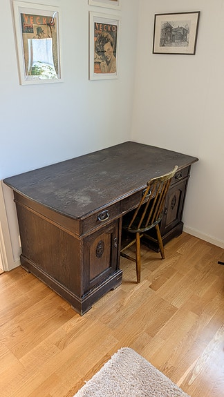 1 100 krStilrent skrivbord i mörkt trä – med förvaringJönköping4 dagarLägg till i favoriter.Öppna annons