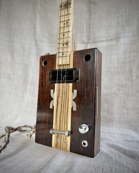 6 500 kr3 string electric perfume tin guitarGöteborg12 novLastbil i rörelseKan skickasLägg till i favoriter.