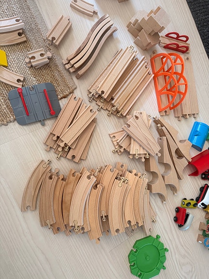 IKEA trätåg med räls och tillbehör