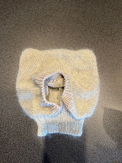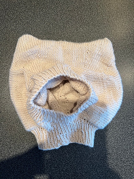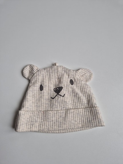 Balaklava stickad som en björn omkrets 40 cm, till barn ca 6 månader.