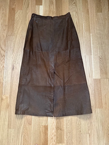 Vintage: lång rödbrun skinnkjol