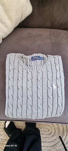 Helt ny polo stickad cable tröja grå MQ XS Bianca knitted sweater höst topp